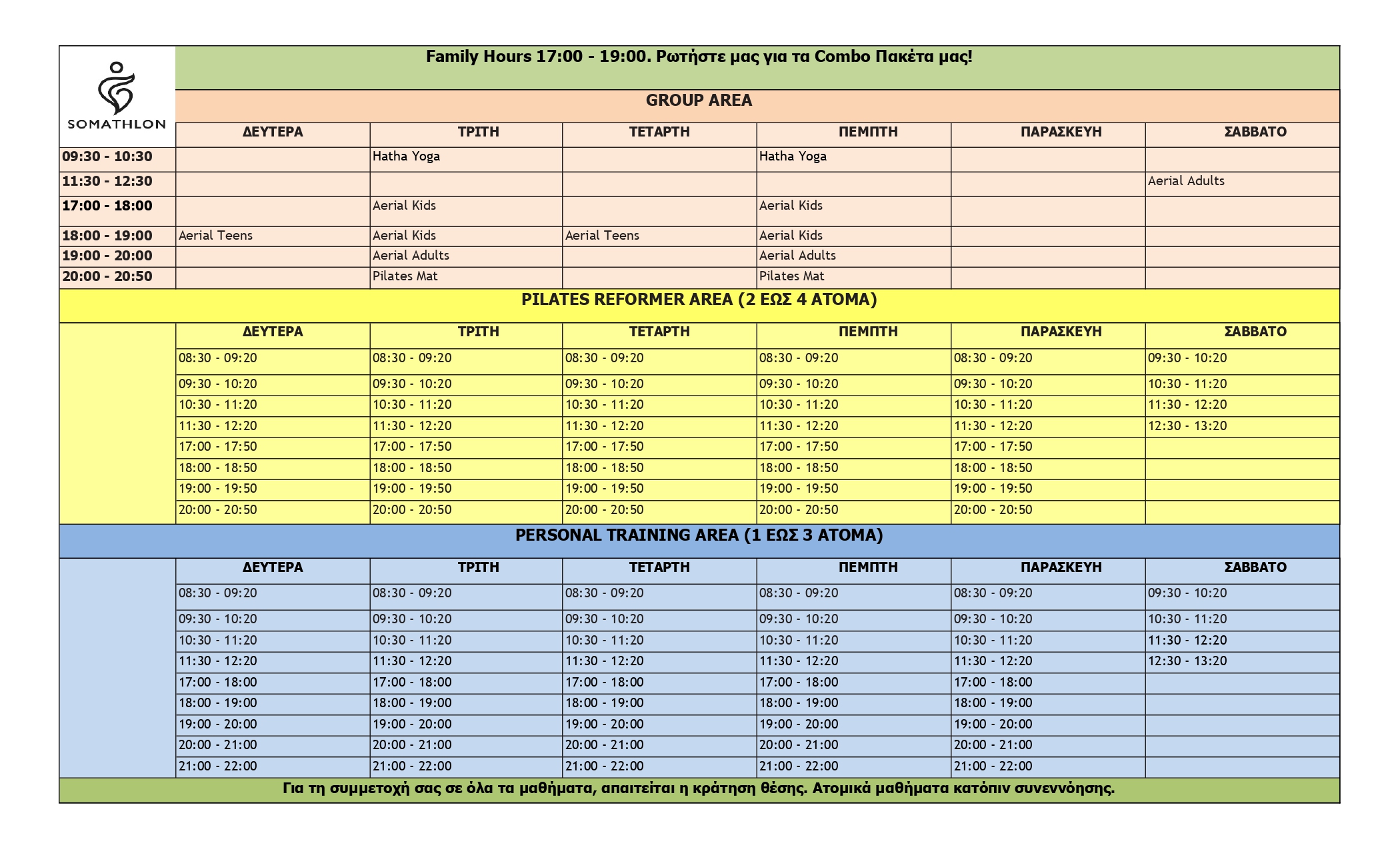 Όλα τα μαθήματα γίνονται μόνο με κράτηση.